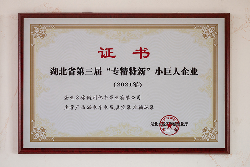 隨州億豐泵業(yè)有限公司位于隨州市曾都經(jīng)濟(jì)開發(fā)區(qū),建筑面積15000平方米,公司現(xiàn)有大學(xué)文憑以上的35人、技術(shù)人員25人(高級(jí)職稱5人、中級(jí)職稱以上27人)。公司自成立以來先后獲得高新技術(shù)企業(yè)、“專精特新”小巨人企業(yè)、隱形冠軍、著名商標(biāo)等一系列榮譽(yù)。